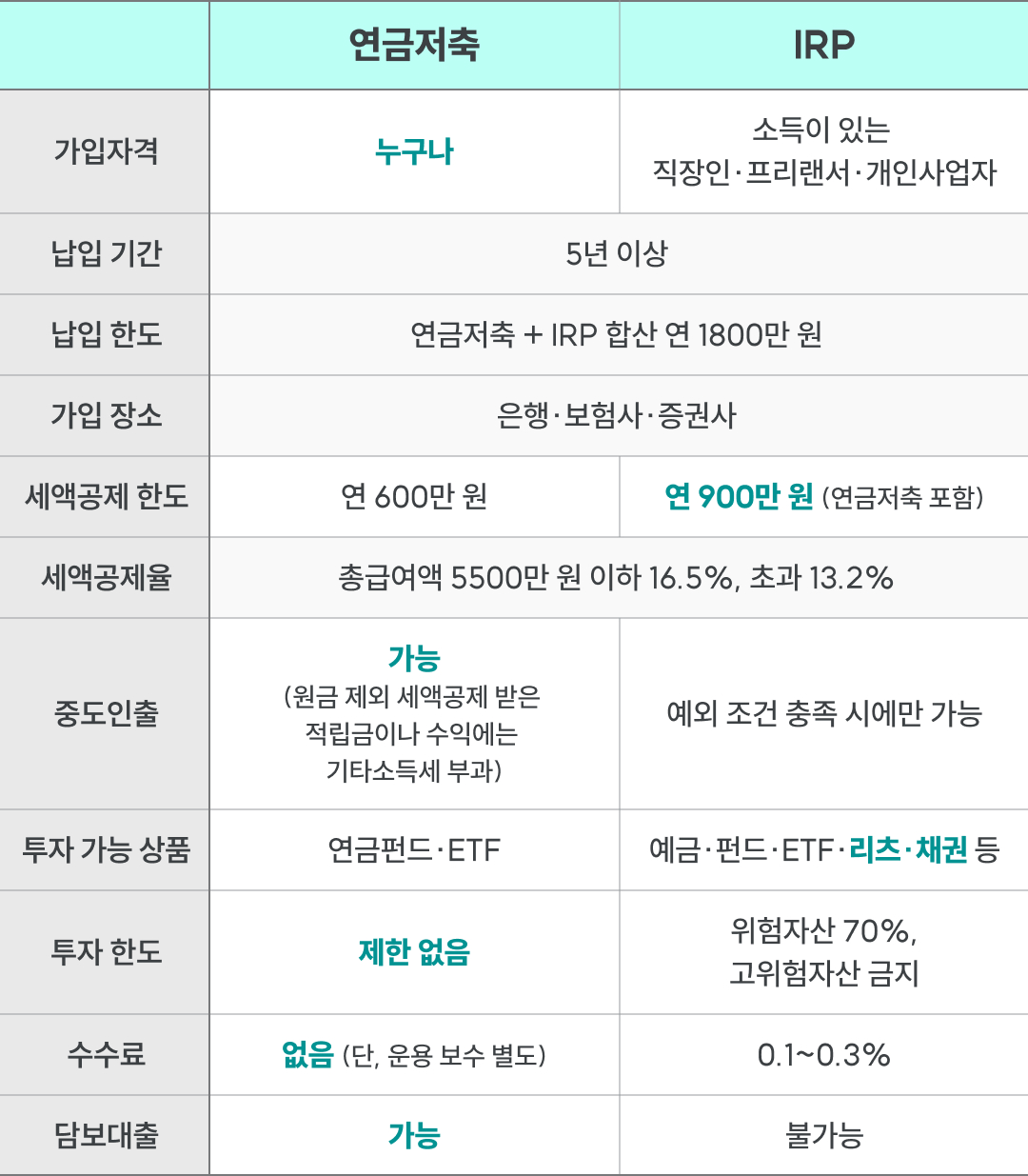 연금저축과 IRP 비교
